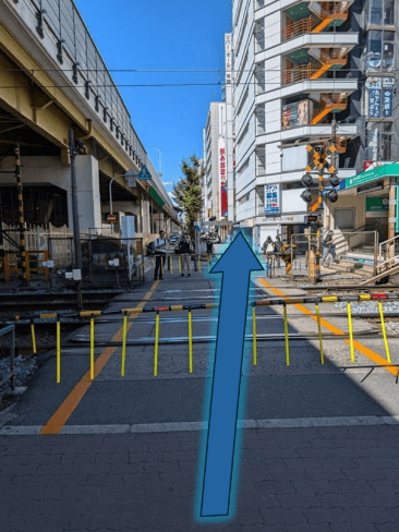 高架下を超えたら、目の前の横断歩道を渡っていただき、南に向かってまっすぐ進んでください。