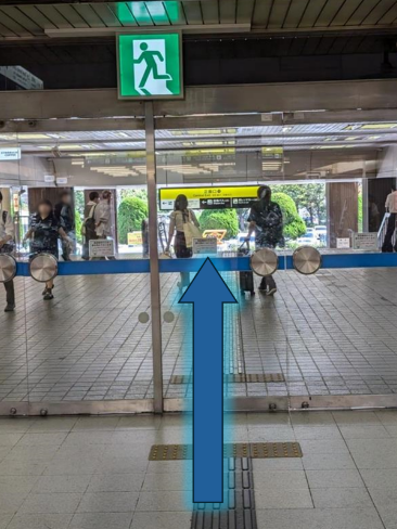 切符売り場の前をまっすぐ進んでください。