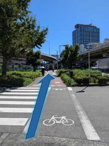 横断歩道を渡られましたら、高架下の道をまっすぐ進んでください。